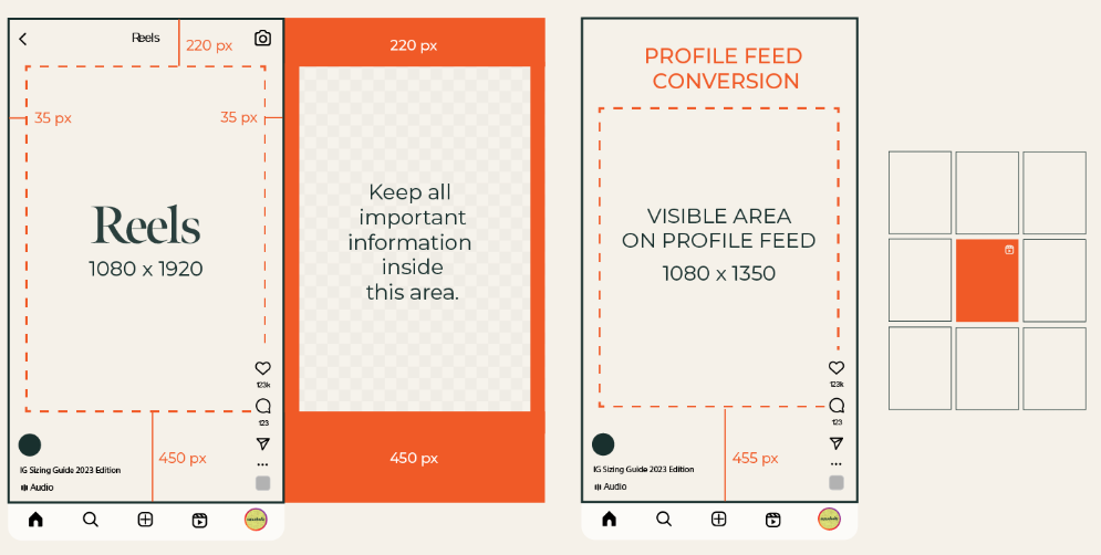 2025년 1월 기준으로 피드에서 노출되는 섬네일 영역은 1080 x 1080(1:1) 정방형 사이즈에서 3:4 / 4:5 비율로 변경 되었습니다. 이로 인해 더 많은 공간을 활용할 수 있게 되었지만, 새로운 비율로 인해 기존 썸네일의 텍스트나 이미지의 일부가 잘려 보일 수 있습니다. 따라서 최적화된 콘텐츠 제작이 더욱 중요해졌습니다. 공들여 만든 컨텐츠에 불이익이 생기지 않도록, 2025년 새롭게 정리된 인스타그램 사이즈 참고하셔서 알맞게 제작해보세요.
